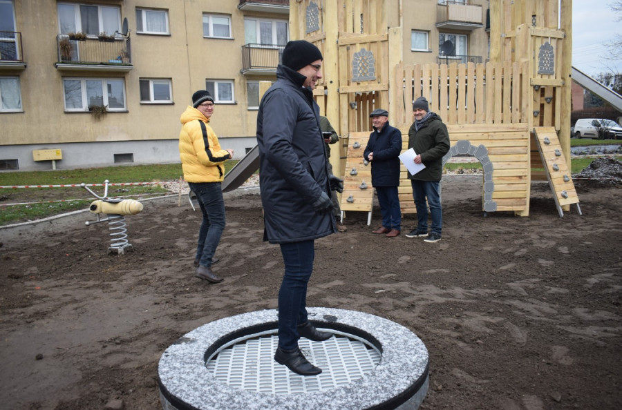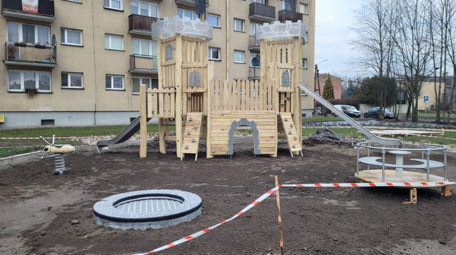Plac zabaw pomyślnie przeszedł odbiór, ale korzystać z niego będzie można dopiero za kilka dni, ponieważ urządzenia zostały osadzone w betonowych podstawach, a wykonawca zastrzega, że czas na związanie betonu to 72 godziny. W poniedziałek w tym miejscu pojawi się jeszcze piasek.