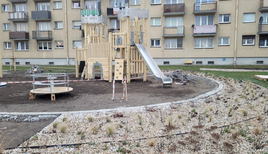Zamek ze zjeżdżalniami, małpi gaj z mini ścianką wspinaczkową, karuzela, bujak i dwie trampoliny to wyposażenie zrewitalizowanego placu zabaw, który znajduje się pomiędzy ulicami 20 Października i Poselską.