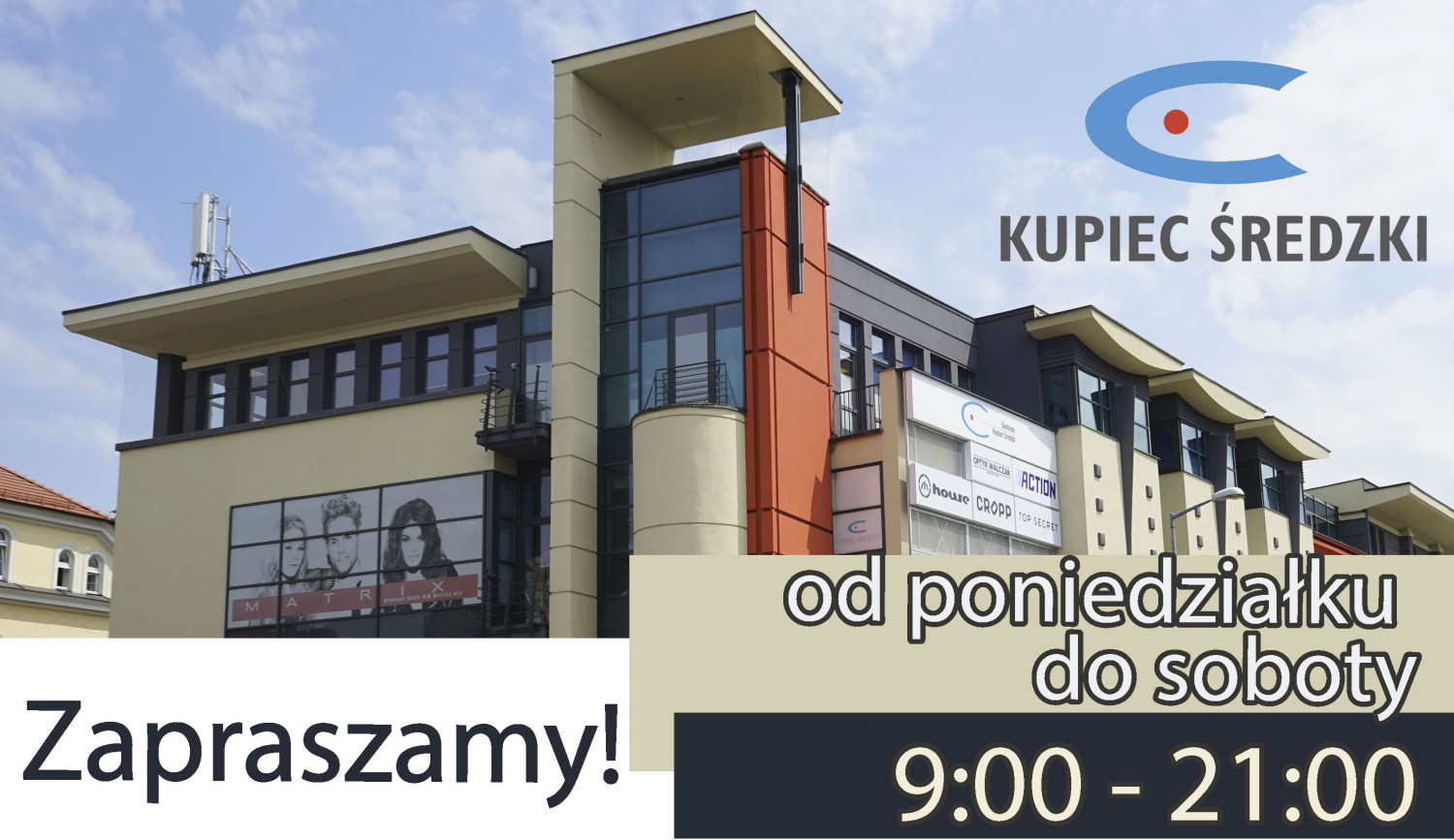 Zbigniew Walczak: Gdy przyjechałem z Poznania do Środy, żeby wybrać miejsce na lokalizację moich salonów od razu wiedziałem, że docelowo musi to być Kupiec Średzki. Miejsce to jest nie tylko reprezentacyjne, ale co najważniejsze przyjazne dla klientów. Bez problemu zaparkują auto, podczas przemieszczania się po galerii mogą skorzystać z ruchomych schodów, czy windy. Co ważne jest też toaleta a całość jest klimatyzowana. Dlatego właśnie w Kupcu otwarłem dwa swoje salony: Optyk Walczak (poziom -1), gdzie w korzystnych cenach można kupić okulary oraz Optyk Walczak Prestige (poziom 0) dla tych najbardziej wymagających klientów, dla których marka ma znaczenie. Ten drugi salon coraz częściej odwiedzają nawet mieszkańcy Poznania. Jednym słowem zapraszam na zakupy do Kupca Średzkiego.