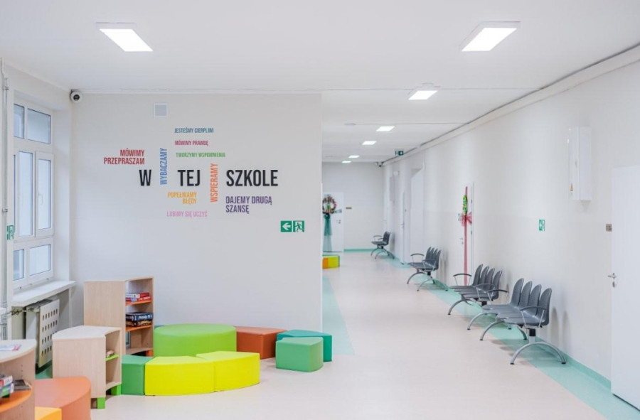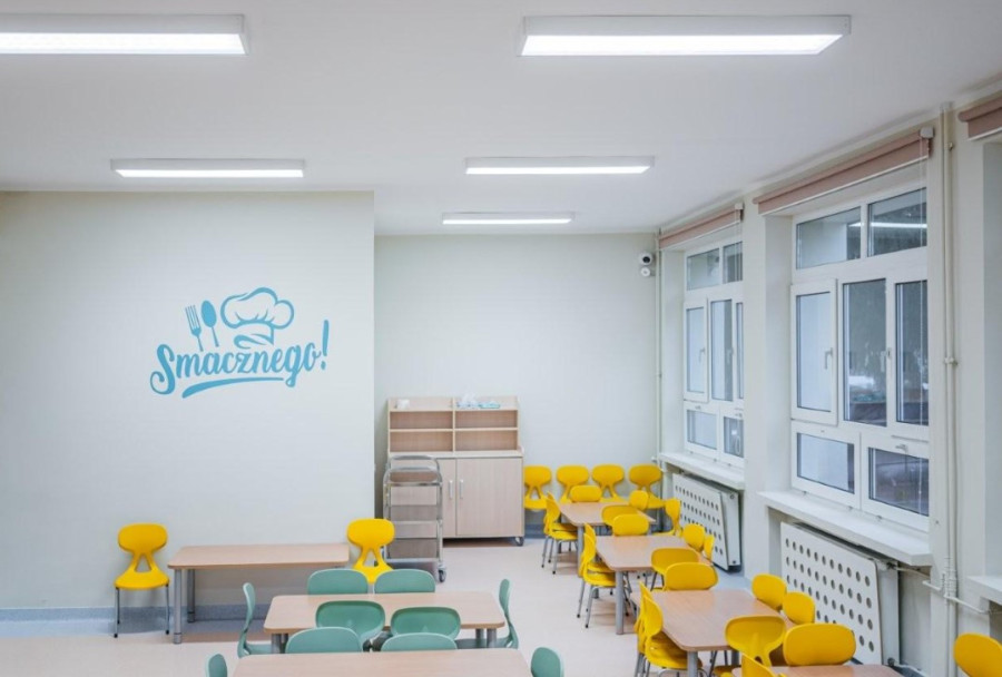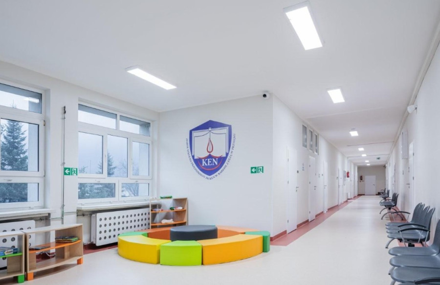 W salach lekcyjnych i gimnastycznych, w przestrzeniach rekreacyjnych, na korytarzach oraz w toaletach znalazły się wysoce energooszczędne lampy z autonomicznym sterowaniem, modele Dione LED z czujnikami ruchu oraz naświetlacze Quest 2 LED, które precyzyjnie doświetlają choćby salę gimnastyczną.