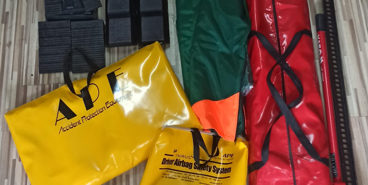 Zamówione do jednostki zostały: mata osłonowa poszkodowanego, kurtki do munduru galowego OSP, nogawice pilarza, parawan GT 020 1 .6x1.6, zabezpieczenie poduszki Airbag I, zestaw zabezpieczeń na ostre krawędzie, zestaw podkładów i klinów od stabilizacji MS III, wspornik progowy kątowy, podnośnik ramowy Farm Jack 60 oraz piła co cięcia szyb Glas Master.