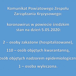Przypomnijmy, że w powiecie średzkim stwierdzono trzy przypadki zakażenia koronawirusem. Jednym z chorych jest 70-letni mężczyzna, który obecnie przebywa w szpitalu zakaźnym przy ul. Szwajcarskiej. Dodajmy, że jedna z zakażonych kobiet również też znajduje się w tej placówce. Z kolei druga z kobiet została wyleczona i tym samym nie jest już nosicielem koronawirusa! Tak wynika z dzisiejszego komunikatu Powiatowego Zespołu Zarządzania Kryzysowego.