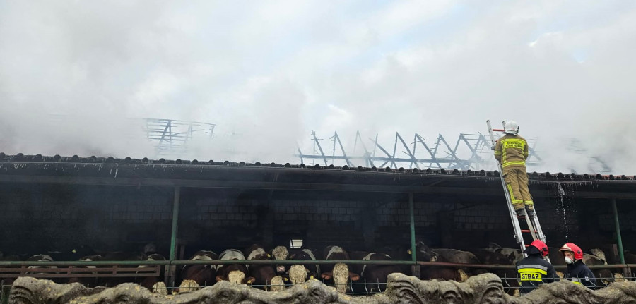 Ze zgłoszenia wynikało, że zapaliła się słoma, ogień szybko zaczął się rozprzestrzeniać, a w budynku znajdował się żywy inwentarz – ponad sto sztuk bydła i około 50 sztuk drobiu.