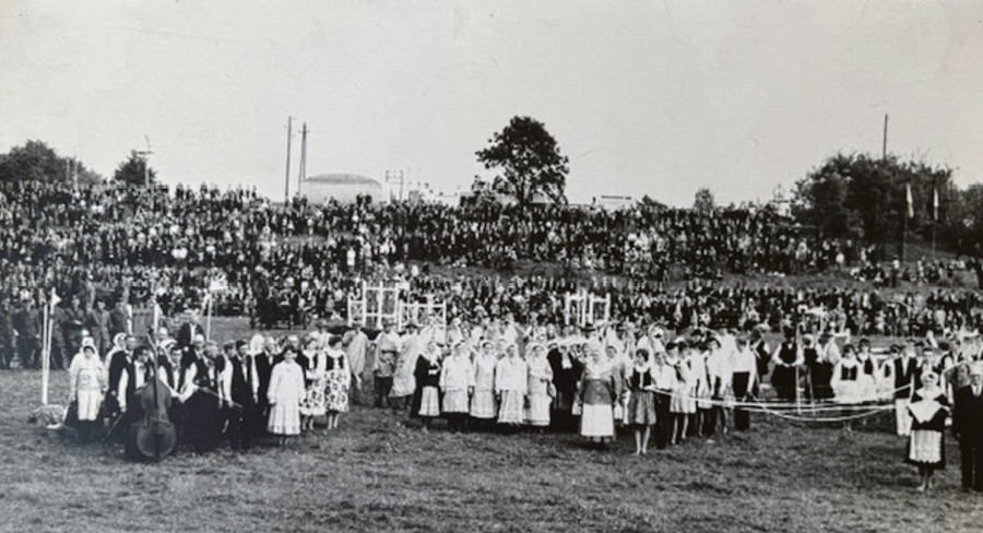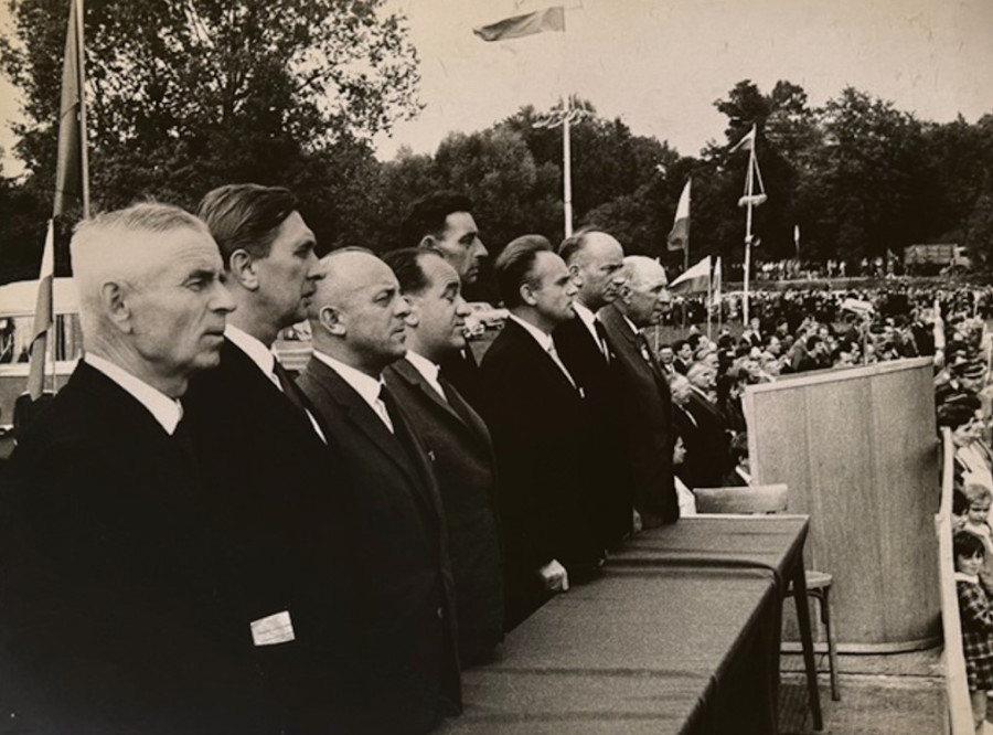 Wystawa odbyła się w dniach 8 – 31 stycznia 1968 roku w Powiatowym Domu Kultury w Środzie Poznańskiej, a jej kuratorem był mój ojciec Henryk Łukaszewski. Duże zainteresowanie wystawą spowodowało, że przeniesiono ją – najpierw do „Biblioteki Pracowników Cukrowni Środa”, a później do „Zakładowego Domu Kultury w Jarosławcu”. Spośród fotografii zaprezentowanych podczas tych trzech wystaw wybrałem dla Państwa sześć, moim zdaniem najciekawszych. Pierwsza z nich, w szerokim planie, pokazuje uczestników dożynek, które 17. września 1967 roku odbyły się w Źrenicy i oczywiście były elementem Obchodów 700-lecia Środy. Na kolejnych fotografiach zobaczycie Państwo m.in. migawki z zawodów hippicznych, które podobnie jak dożynki odbyły się w Źrenicy pod Środą.