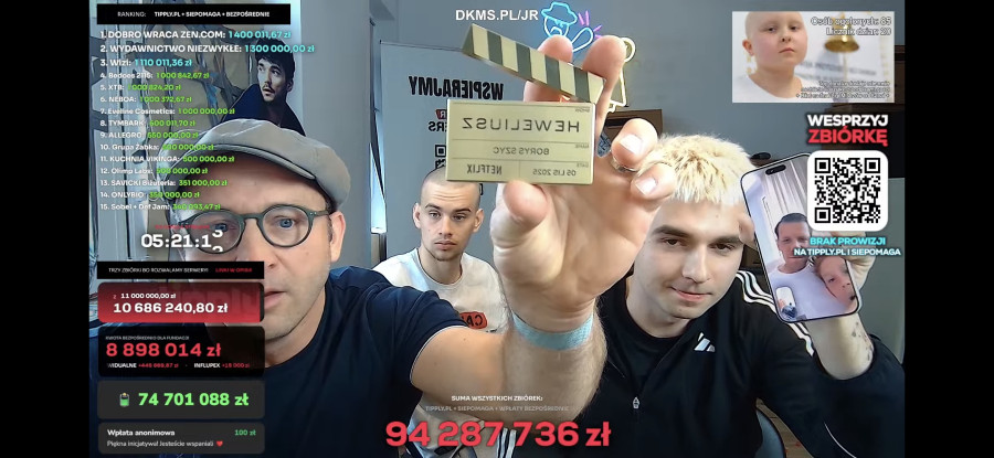 W czasie transmisji widzowie zachęcani są do zapisania się do DKMS.