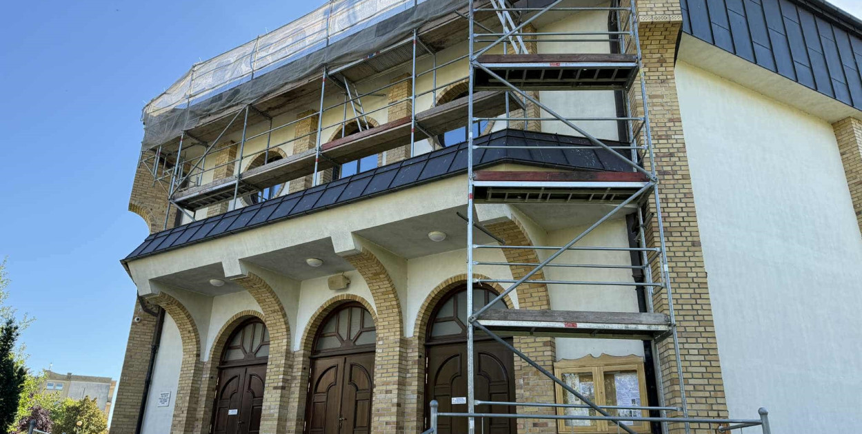 W związku z prowadzonymi pracami wierni proszeni są o ostrożność przy wchodzeniu do kościoła. Przy wejściu ustawione jest rusztowanie.