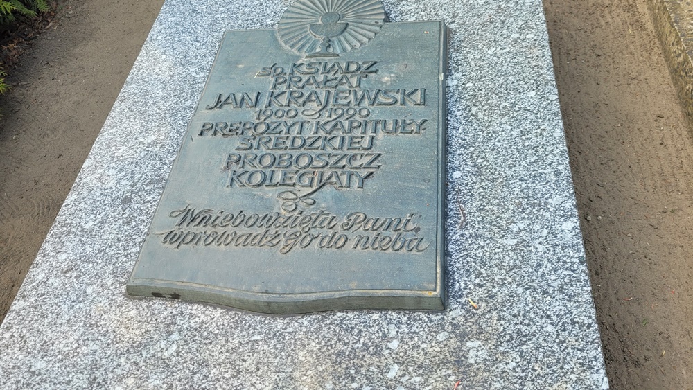 Proboszczem Kolegiaty ks. prałat Jan Krajewski był do 1979 roku. Do końca swych dni mieszkał w Środzie. Zmarł 17 stycznia 1990 roku. Został pochowany na cmentarzu w Środzie.