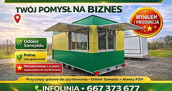 Promuj ogłoszenieWypożyczalnia - produkcja przyczep gastronomicznych - Twój pomysł na biznes. Infolinia - 667 373 677 Przyczepy posiadają odbiór Sanepidu, gotowe do ... czytaj więcej