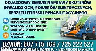 Promuj ogłoszenieDojazdowy serwis naprawy skuterów inwalidzkich Shoprider, rowerów trójkołowych, rowerów elektrycznych, sprzętu rehabilitacyjnego, sprzętu fitness oraz rotorów medycznych www.naprawiamyrehabilitacyjne.pl Dojazdowy Serwis Naprawy to ... czytaj więcej
