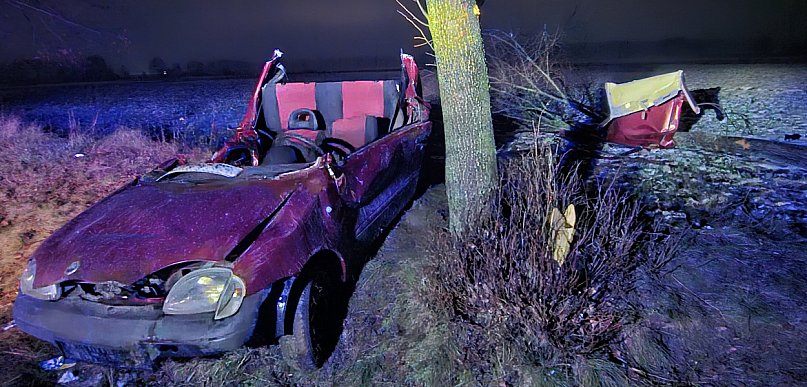 Uderzył w drzewo, które się przewróciło. Mężczyzna uwięziony w pojeździe